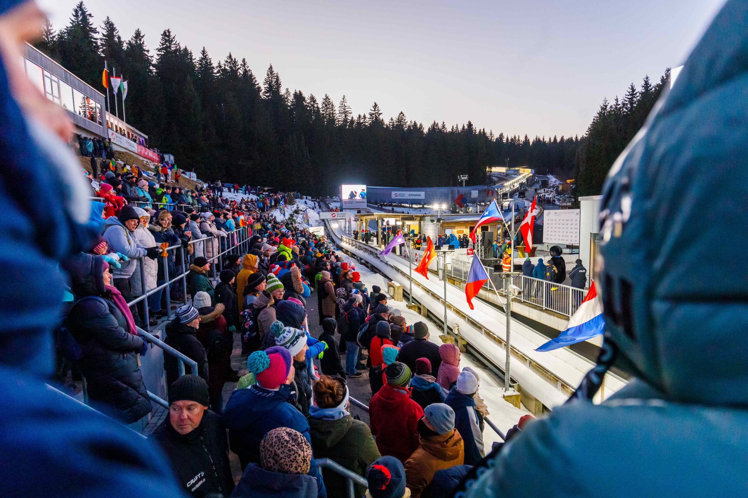 Spannung und Emotion pur: Insgesamt 7500 Zuschauer beim Finale zum IBSF Bob + Skeleton Weltcup 2025/2026 am SachsenEnergie-Eiskanal Altenberg