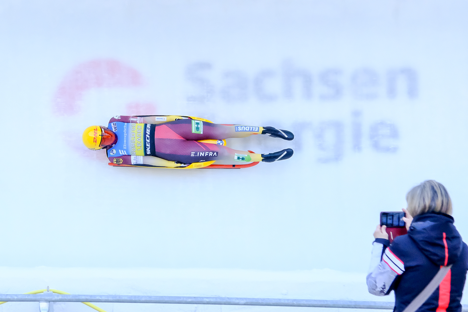 Bei den Frauen hat Julia Taubitz die besten Chancen auf ihre sechste Kristallkugel. Ihre fünfte hintereinander. Die Olympiasiegerin liegt nach dem ersten Durchgang auf Platz drei (+0,035 zurück) in einem extrem engen Spitzenfeld. Kendija Aparjode aus Lettland ist mit einer Laufzeit von 52,034 Sekundenhauchdünn in Führung. Nur 0,002 Sekunden dahinter folgt die Deutsche Merle Fräbel auf Rang zwei. Altenberg-Weltmeisterin Lisa Schulte aus Österreich (+0,112) kommt auf Rang vier und sowohl Lokalmatadorin Melina Fischer zeitgleich mit ihrer Teamkollegin Anna Berreiter (+0,417) haben vor dem zweiten Lauf noch Chancen auf eine Topplatzierung.