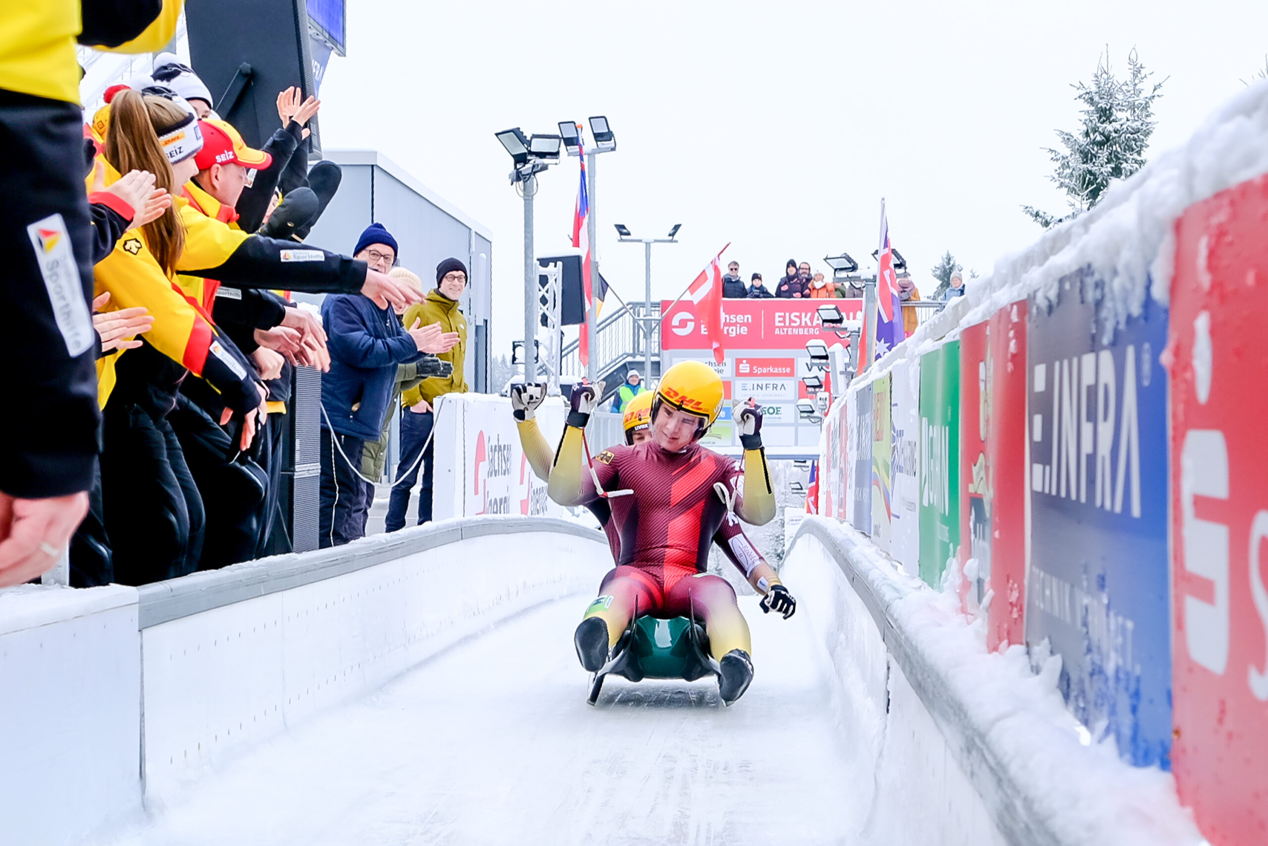 Zum Finale der FIL Junioren Weltmeisterschaften 2026 am SachsenEnergie-Eiskanal Altenberg konnten die deutschen Junioren die Team Staffel für sich entscheiden. Marco Leger und Anka Jänicke legten die Basis für die Doppelsitzer Louis Grünbeck und Maximilian Kührt, die einen deutlichen Vorsprung von knapp vier Zehntelsekunden ins Ziel brachten und somit überzeugend Juniorenweltmeister wurden.