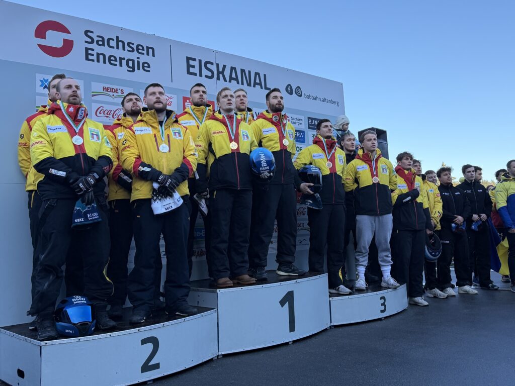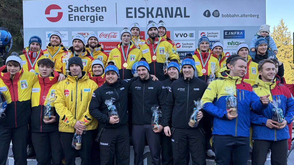 Wie schon im Zweierbob machten die deutschen Männer auch heute am SachsenEnergie-Eiskanal die ersten vier Plätze in der Viererbob-Entscheidung unter sich aus – und die Piloten auf den ersten drei Plätzen nehmen nun jeder einen kompletten Medaillensatz vom IBSF Europacup Bob in Altenberg mit nach Hause.