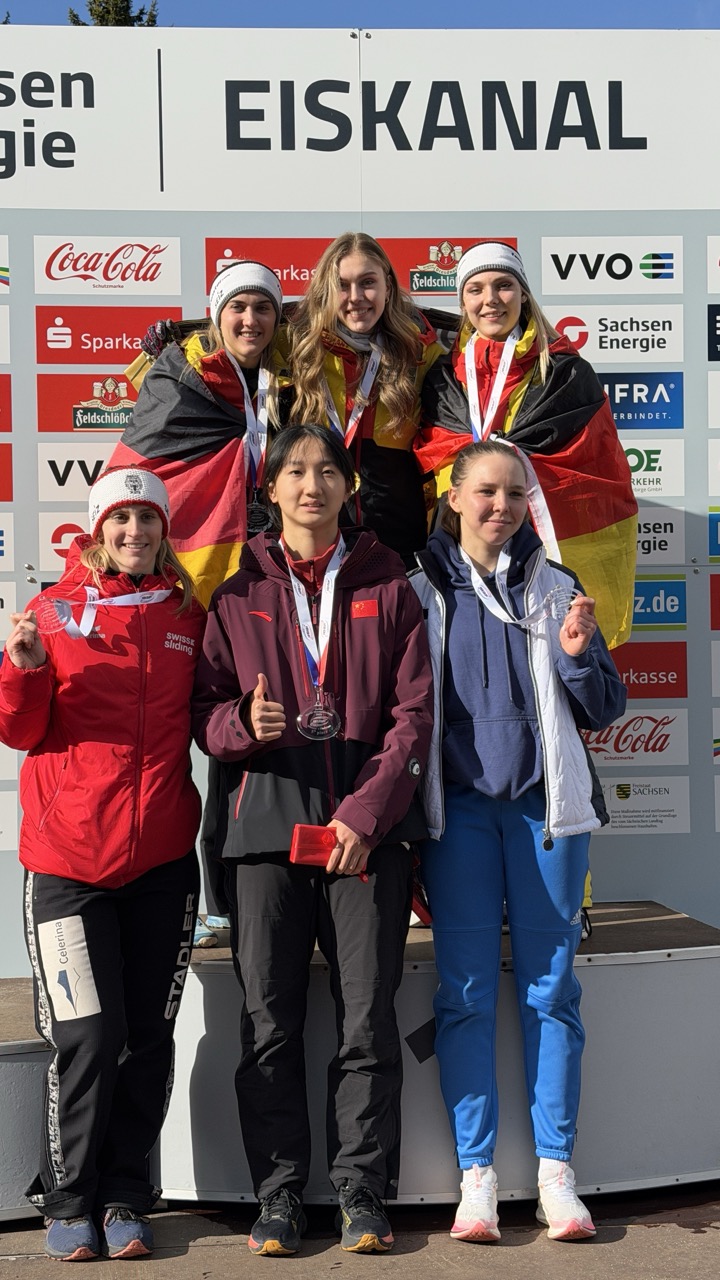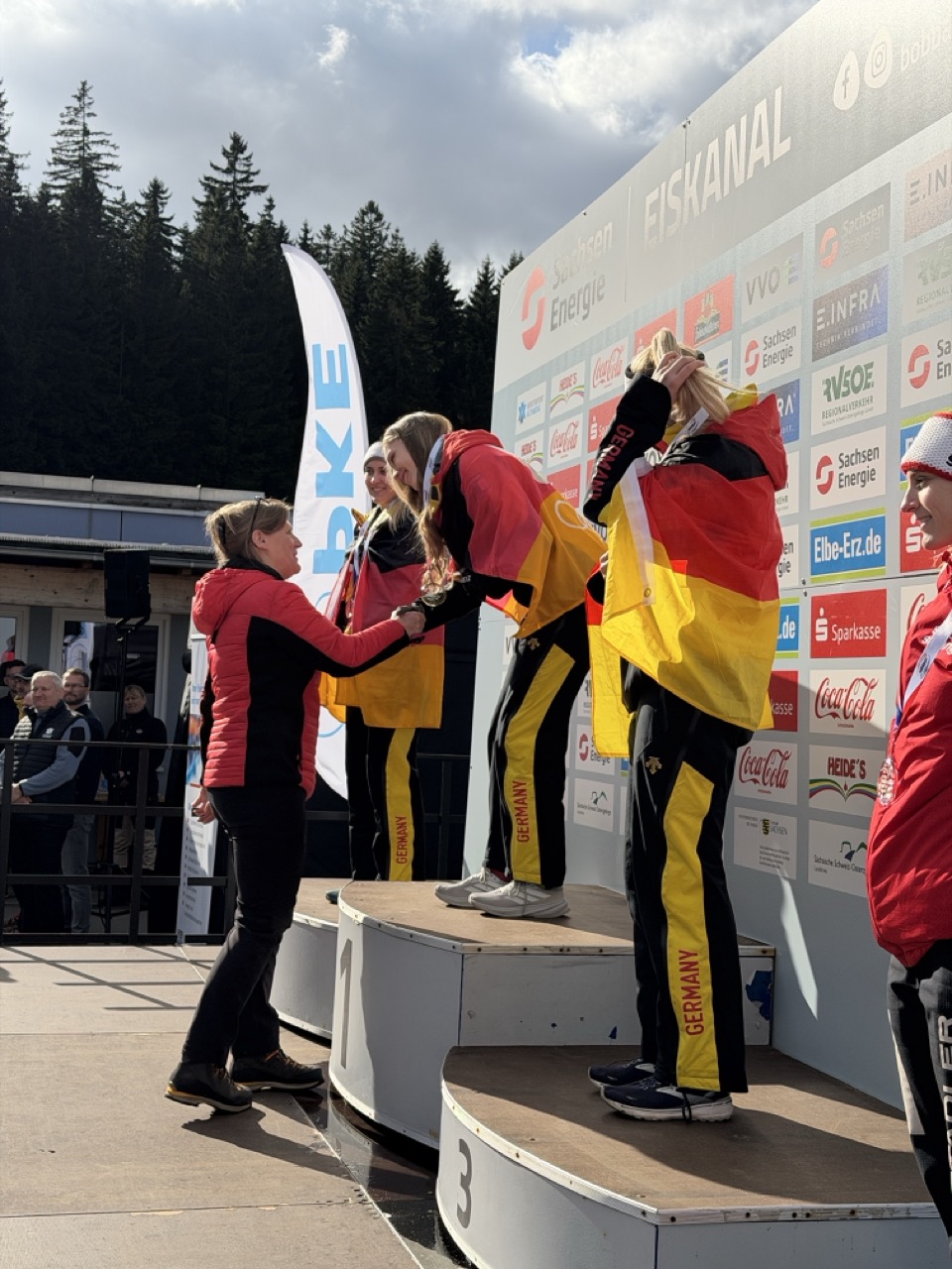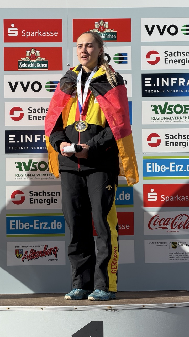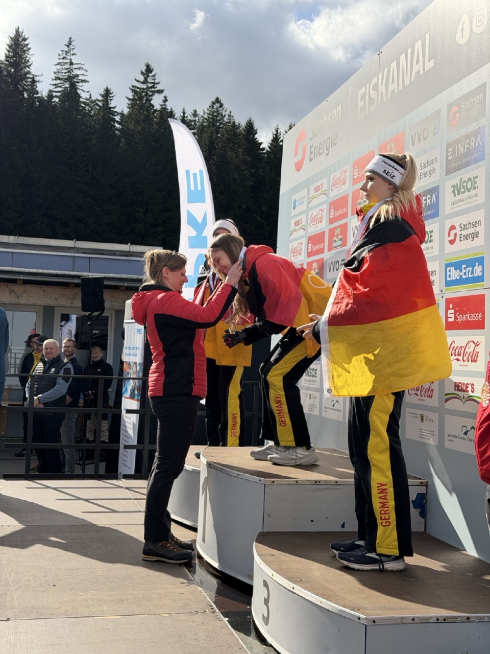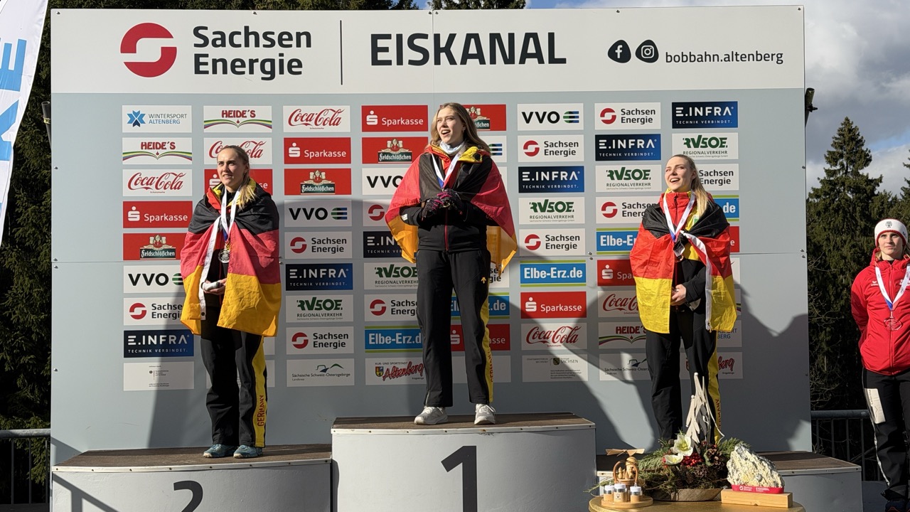 Neue Juniorenweltmeisterin ist Viktoria Hansova aus Thüringen. Trotz einer schmerzhaften Verletzung am Fuß, die einen Start beim Saisonhöhepunkt fast verhindert hätte, gelang der 21-Jährigen in Altenberg gestern Nachmittag die Wiederholung ihres JWM-Titels von 2024. Marie Angerer (19) vom WSV Königssee (+0.04 sec) und die erst 17-jährige Cosima Sebastian vom RRC Zella-Mehlis (+0.24 sec) machten mit Silber und Bronze das rein deutsche Podium perfekt. In der U20-Wertung ging der JWM-Titel an Marie Angerer vor Teamkollegin Cosima Sebastian und der Chinesin Liang Yuxin (19).